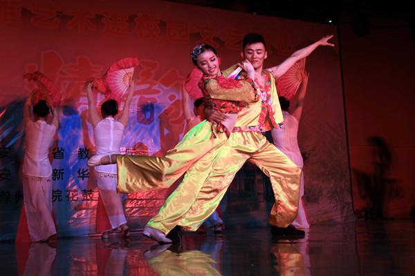 本次“鼓鄉(xiāng)情韻”高雅藝術(shù)進(jìn)校園活動(dòng)由安徽省教育廳主辦,安徽新華學(xué)院承辦。滁州學(xué)院花鼓藝術(shù)團(tuán)的藝術(shù)家們?yōu)榘不招氯A學(xué)院師生帶來(lái)了一場(chǎng)精彩絕倫的視聽(tīng)盛宴,不僅讓廣大師生零距離感受到了鳳陽(yáng)花鼓的獨(dú)特藝術(shù)魅力,更豐富了學(xué)生的精神生活,營(yíng)造出和諧的校園文化氣氛。